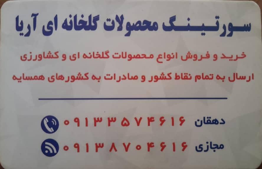 سورتینگ محصولات گلخانه ای آریا با مدیریت جناب آقای دهقان